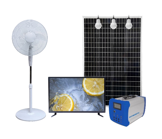 Enables a family to live a fire hazard free life with no air pollution from burning kerosene. Stand-alone system general includes a solar panel, Liion batteries, energy-efficient LED lights, multiple cell phones charger plugs, and DC appliance like fan/TV.